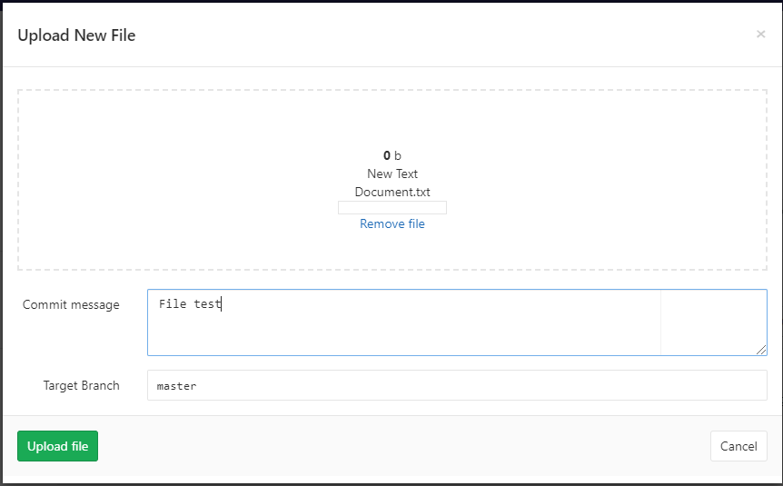 thirteen. Kemudian akan tampak seperti gambar berikut, anda dapat mengupload file dengan cara elevate and drop file ke area yang tersedia pada gambar berikut atau memilih file yang dituju. Kemudian untuk bagian Commit message anda dapat memasukkan Pesan Singkat (bebas anda mau isi apa namun banyaknya teks terbatas) atau membiarkan isi default GitLab.